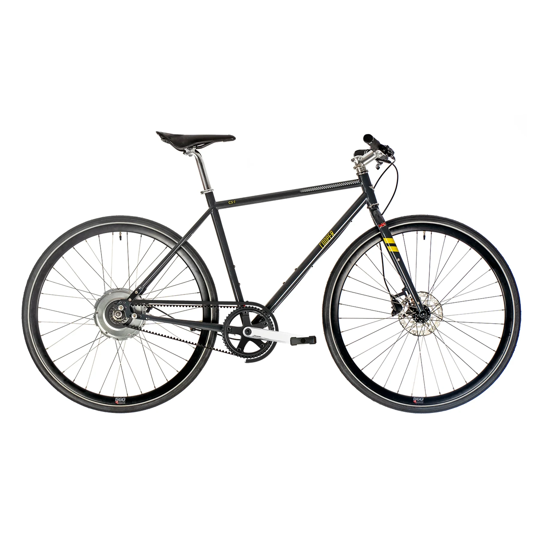 Das kaum sichtbare Antriebssystem von Zehus vereint Motor, Akku und Elektronik in einem und lässt das CS-1E auf den ersten Blick kaum als E-Bike erkennen. Dank Gates CDX Riemenantrieb kannst du sorgen- und nahezu wartungsfrei deine Gegend erkunden und lästige Ölflecken gehören der Vergangenheit an.