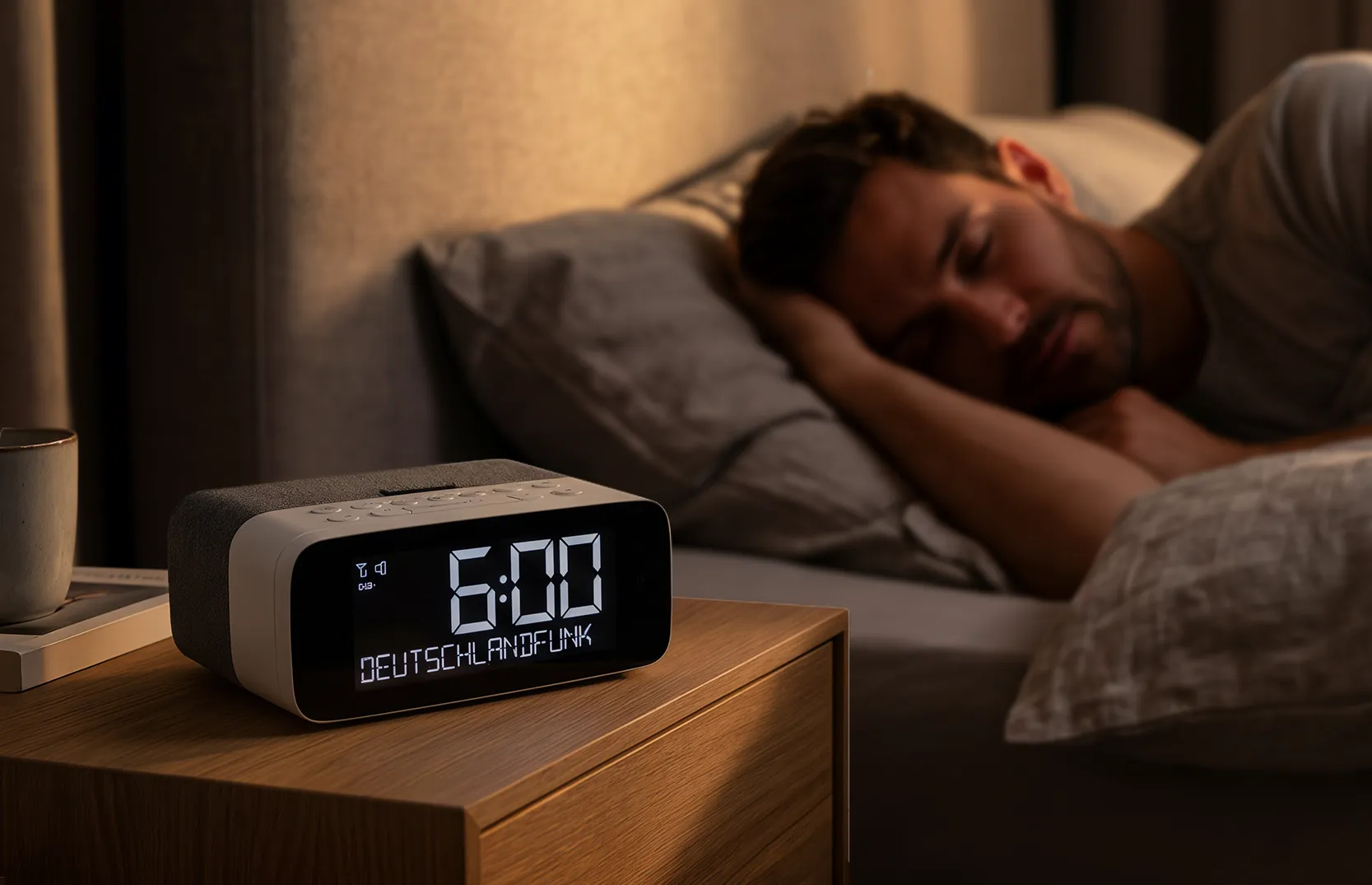 Vier individuell einstellbare Weckzeiten – perfekt abgestimmt auf Ihren Rhythmus: einmalig, täglich, werktags oder am Wochenende. Ein Sleeptimer von 15 bis 90 Minuten begleitet entspannt in den Schlaf. Wachen Sie mit Radio (DAB+/FM) oder einem klassischen Signalton auf.