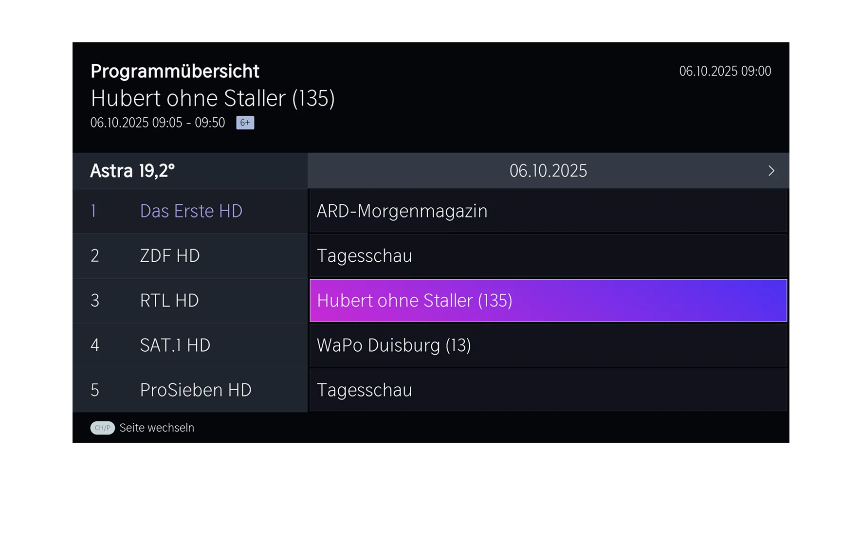 - Neues Info-Menü zur aktuellen und folgenden Sendung