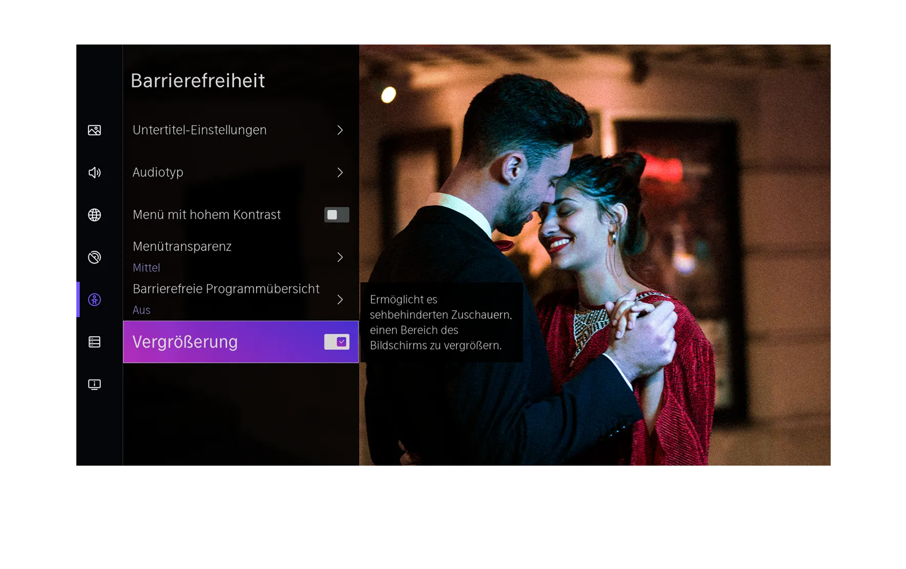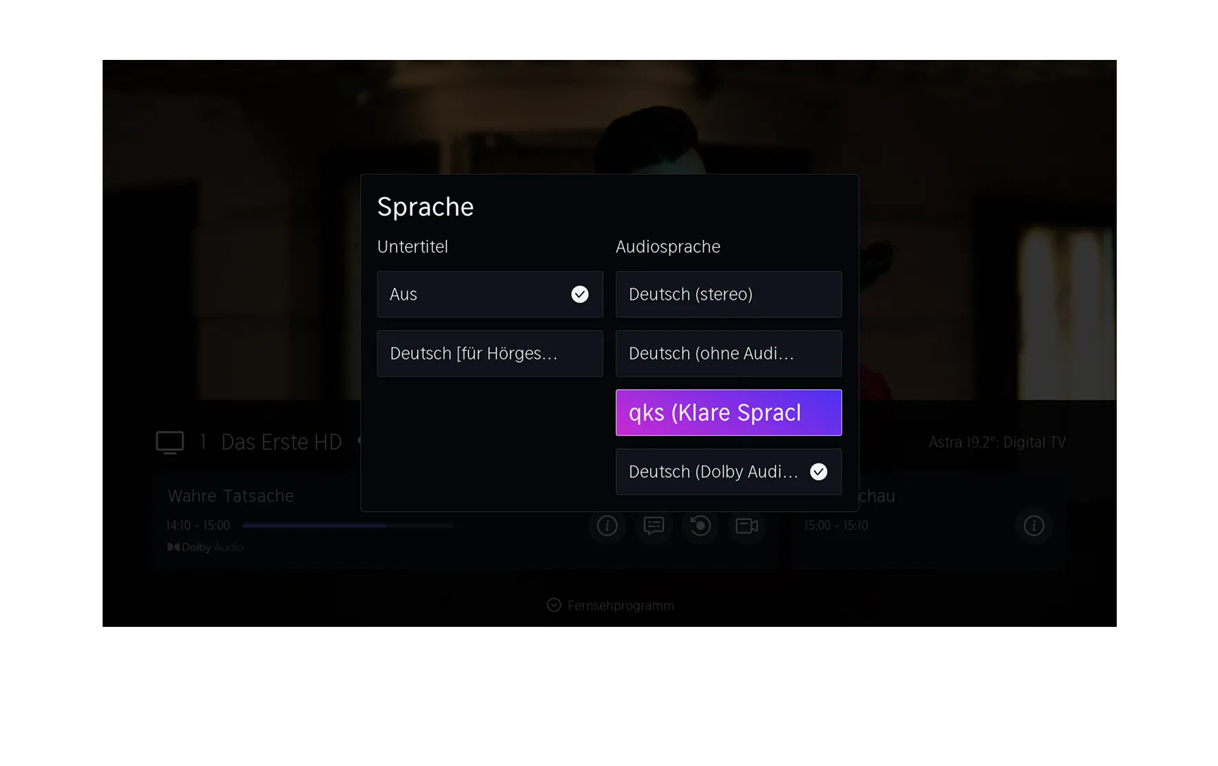 - Direkte Anwahl auf Funktion „Klare Sprache“ bei ARD und dritten Programmen