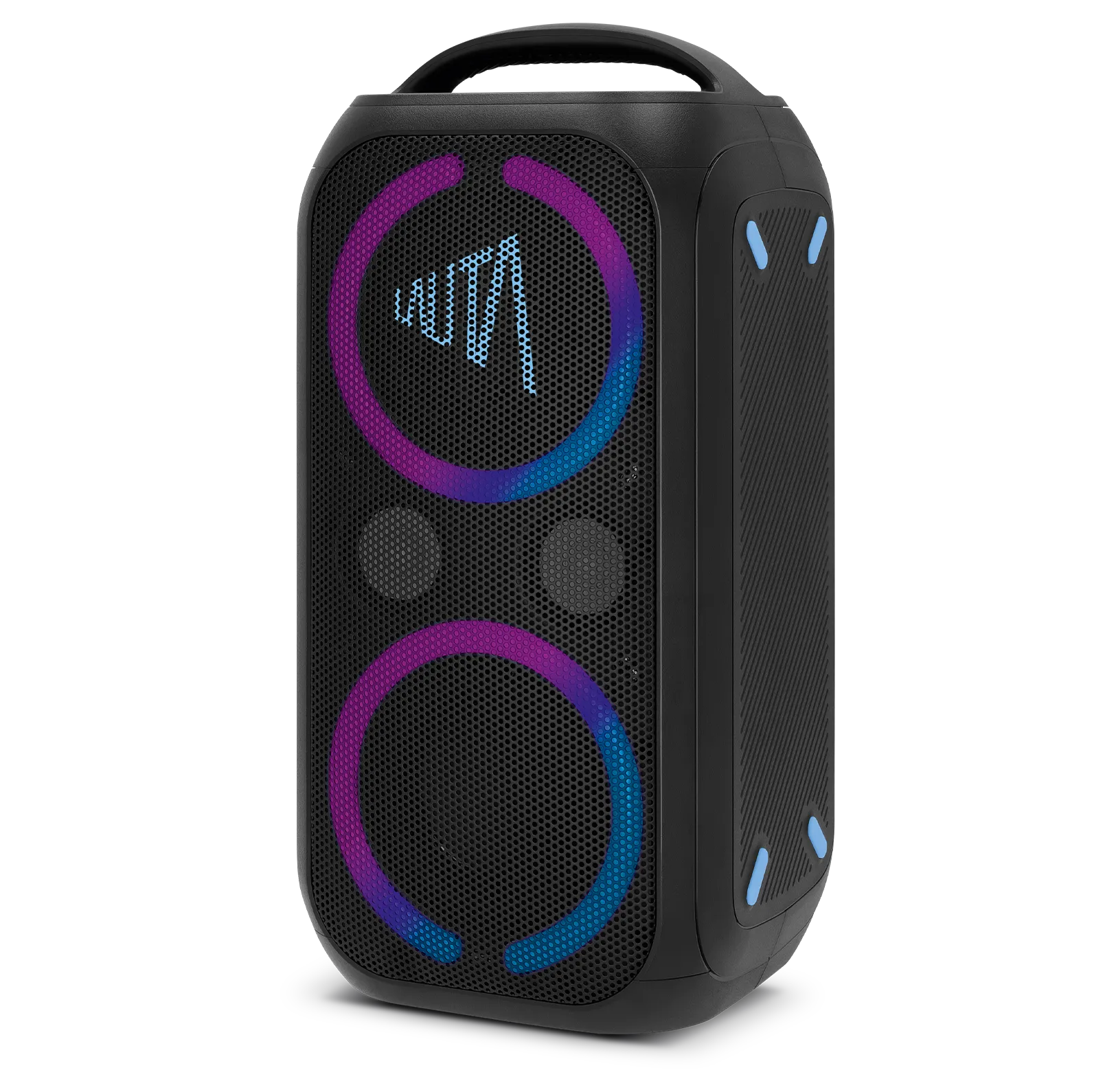 Mit satten 80 Watt, gewaltigem Bass und integrierten Lichteffekten bringt die WUMMSBOX Stimmung in jede Runde. Kabellos, akkubetrieben und spritzwassergeschützt sorgt sie überall für den richtigen Beat – egal ob Gartenparty, Grillabend oder spontaner Ausflug.