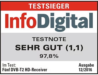| Empfang von: HDTV (H.265, H.264), SD (MPEG-2) |