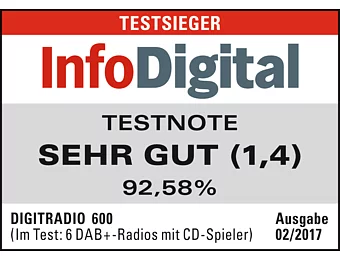| DIGITRADIO 600, Teleskopantenne, F-Stecker-Werkzeug (für die abnehmbare Antenne), Netzteil, Fernbedienung, Bedienungsanleitung |