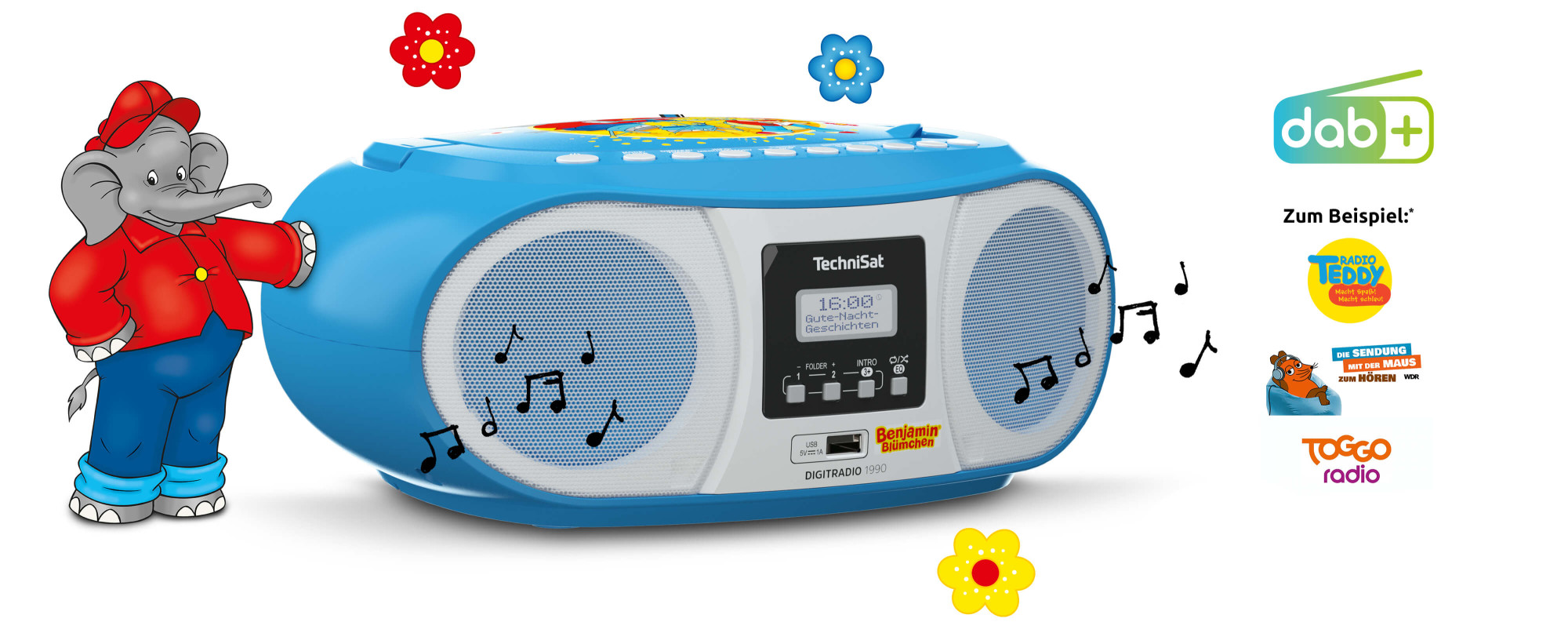 Radiohören macht mit dem DIGITRADIO 1990 in der Benjamin Blümchen Edition richtig Spaß. Hier sammeln Kinder erste Erfahrungen im Umgang mit einem modernen Digitalradiogerät. Das DIGITRADIO 1990 empfängt alle im Empfangsgebiet verfügbaren digitale DAB+ Radioprogramme wie auch analoge UKW-Sender. Mittlerweile gibt es sogar immer mehr Sender, deren Programmangebot sich speziell an die jüngeren Hörerinnen und Hörer richtet.