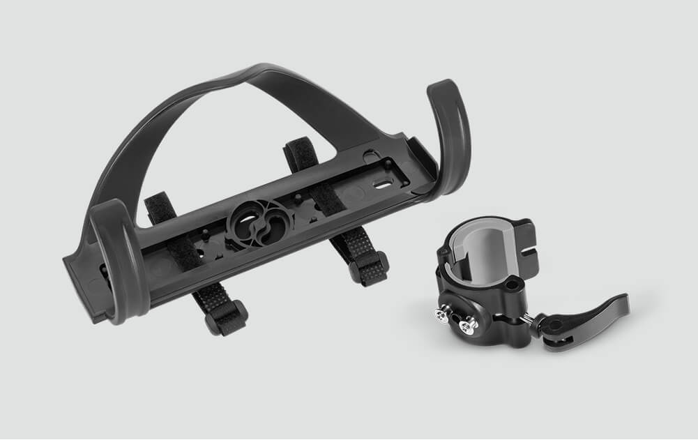 Die Universalhalterung für die Befestigung am Lenker oder an der Vorrichtung für den Getränkehalter ist bereits im Lieferumfang enthalten.